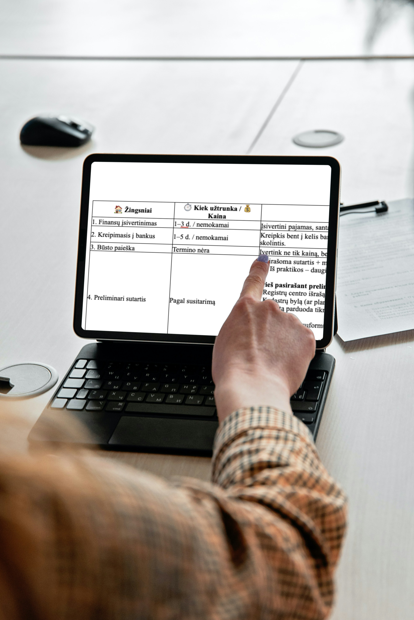 Aiškus planas, padedantis suprasti visą būsto pirkimo procesą – nuo pirmo žingsnio iki raktų atsiėmimo.